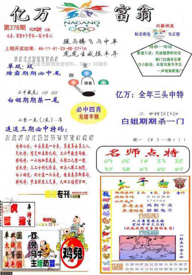 278期:绝杀二尾【4尾+9尾】开:虎28中 |