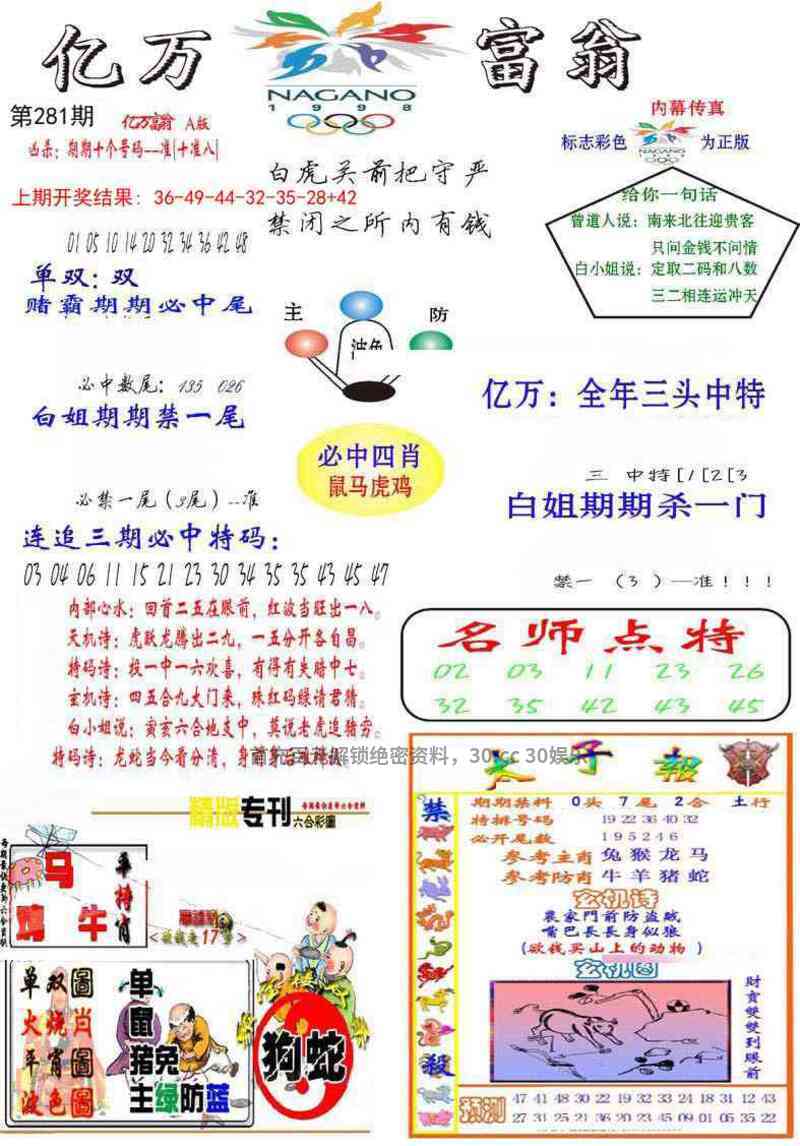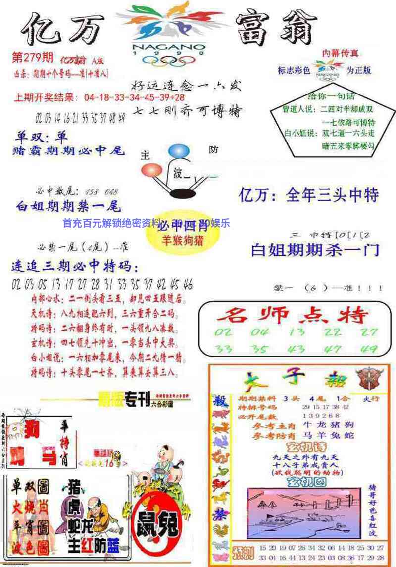 281期:绝杀三肖【鼠龙猴】开:羊47中 |