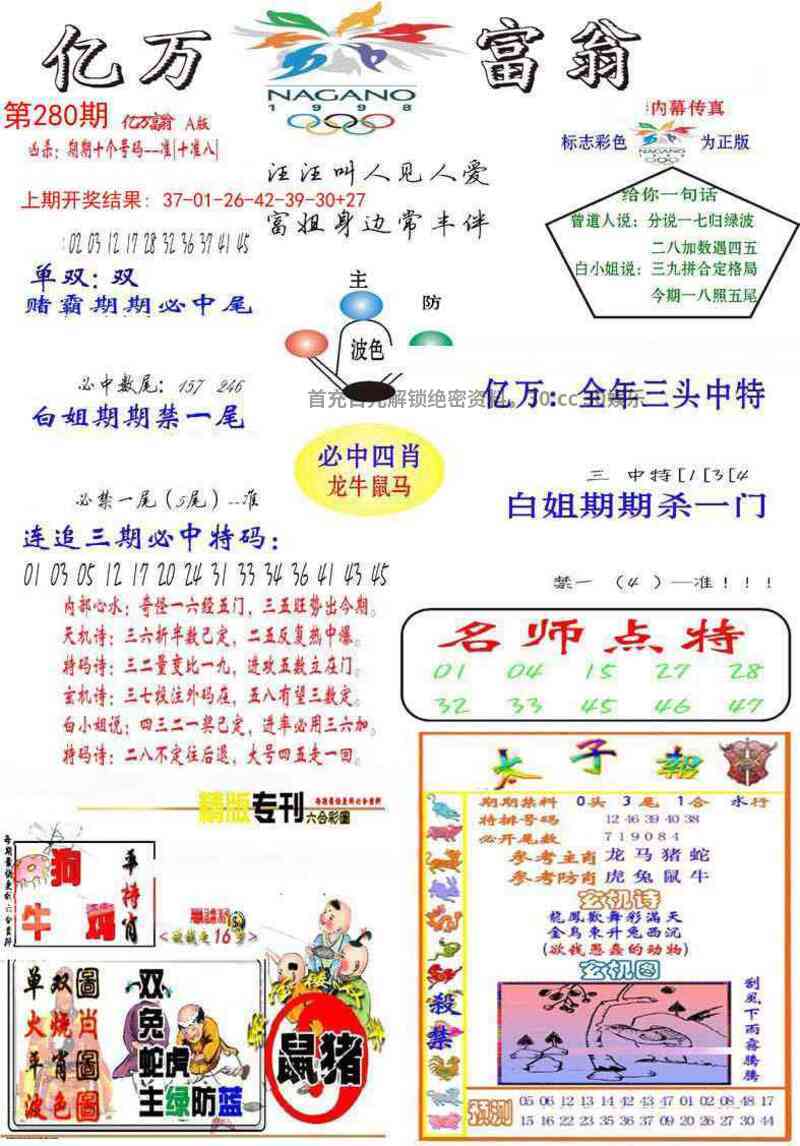 280期:绝杀二尾【4尾+8尾】开:鼠42中 |